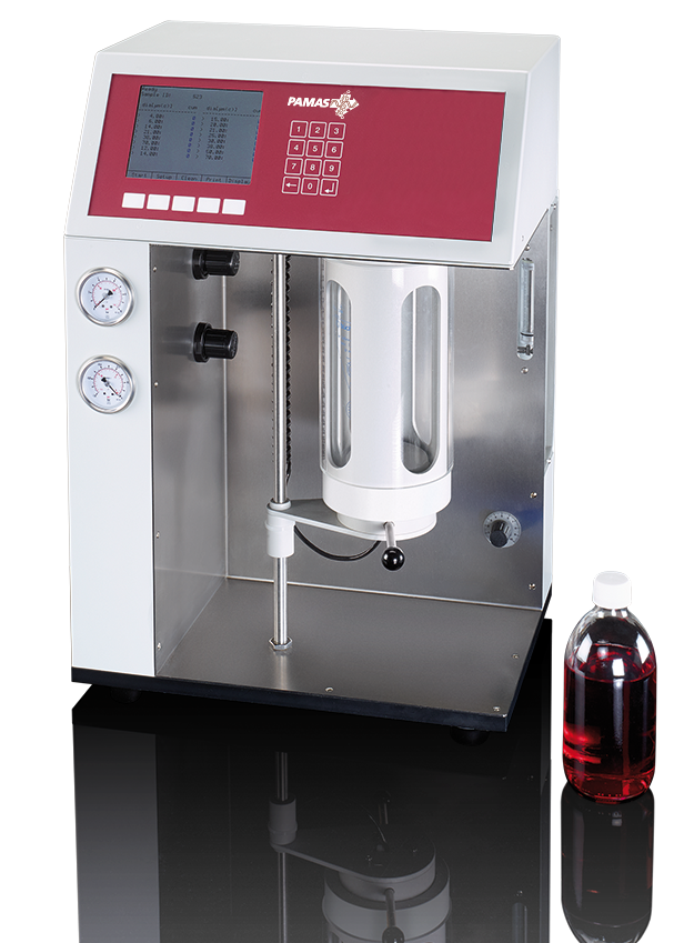 PAMAS liquid particle counters use optical sensors to measure and count particles as fluid passes through a detection cell. Each particle interrupts a light beam, allowing the instrument to record its size and quantity precisely.