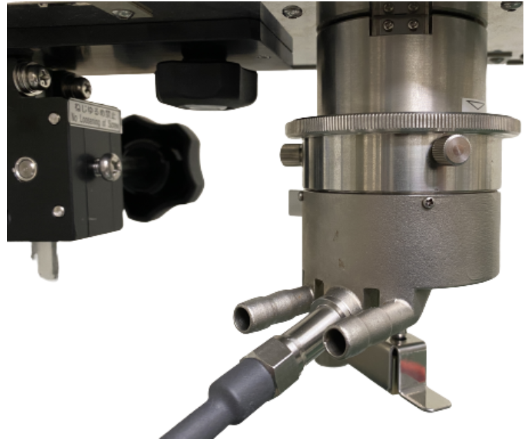 Connect the hose to the sample cup to keep the sample temperature constant.
